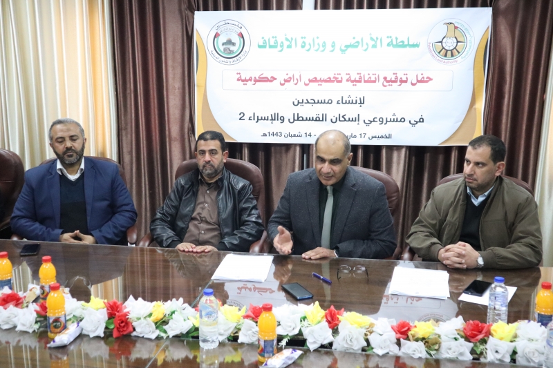 احتفت سلطة الأراضي ووزارة الأوقاف والشئون الدينية بتخصيص أراضٍ حكومية لصالح بناء مسجدين أحدهما في حي القسطل بمدينة دير البلح وسط القطاع ، والآخر في حي الإسراء2 بمدينة خان يونس جنوب القطاع .