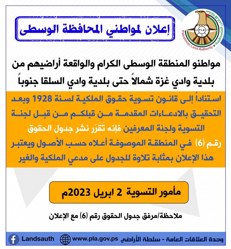 جميع حقوق الطبع محفوظة لدى سلطة الاراضي pla.gov.ps