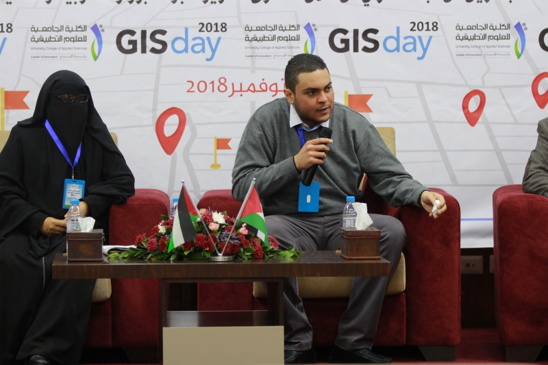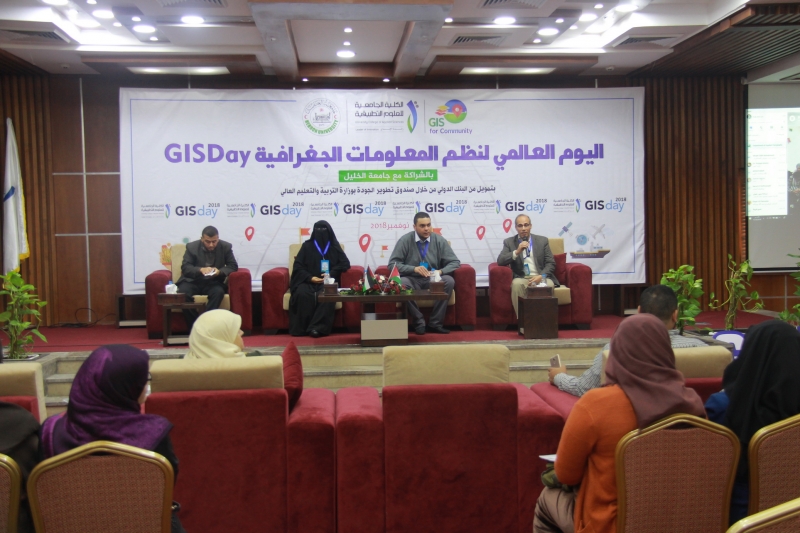 وتهدف فعاليات اليوم العالمي لنظم المعلومات الجغرافية GIS Day، والذي ينظمة مركز يوكاس لنظم المعلومات الجغرافية بتمويل من البنك الدولي من خلال صندوق تطوير الجودة بوزارة التربية والتعليم العالي، ويهدف إلى تبادل الخبرات العلمية والاكاديمية في مجال نظم المعلومات الجغرافية والمساهمة في تعريف المجتمع المحلي بهذه النظم وتوضيح مدى امتداد هذا العلم وتطبيقاته إلى حياة الناس، وزيادة فرص التعاون بين المؤسسات الأكاديمية ومؤسسات القطاع والخاص، والمساهمة في عرض إنجازات المجتمع في هذا المجال، وذلك ضمن محاور تطبيقات نظم المعلومات الجغرافية والاستشعار عن بعد والإدارة الذكية للمياه.وحضر حفل الافتتاح كل من الأستاذ الدكتور رفعت رستم رئيس الكلية، الدكتور ماهر عجور النائب الأكاديمي، الدكتور تامر شتيوي نائب الرئيس لشئون التخطيط والعلاقات الخارجية، الدكتور صلاح الزرو رئيس جامعة الخليل عبر تقنية المؤتمرات المرئية، المهندس سهيل مدوخ وكيل وزارة الاتصالات وتكنولوجيا المعلومات، إضافة إلى نخبة من الخبراء والأكاديميين المختصين في مجال نظم المعلومات الجغرافية والعشرات من الطلبة.