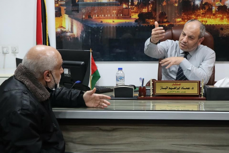 رئيس سلطة الأراضي المستشار د. عماد الباز يلتقي مجموعة من أهالي منطقة الأمريكية وأهالي عشوائية الإسراء ومواطنين من مناطق مختلفة بقطاع غزة اليوم في مكتبه بمدينة غزة