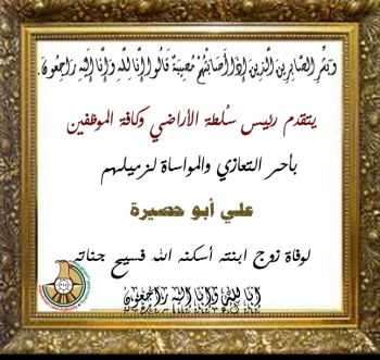 رئيس سُلطة الأراضي وكافة الموظفين ينعون الزميل الفاضل عبد الله حمد سائلين المولى عز وجل أن يتغمده بواسع رحمته
