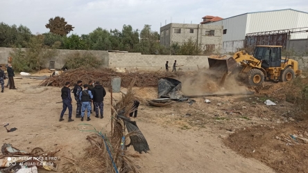 ازالة تعديات على حرم وادي غزة شرق مدينة الزهراء للمواطنينن محمد زياد أبو عريبان و توفيق عبد الرحمن أبو مغصيب