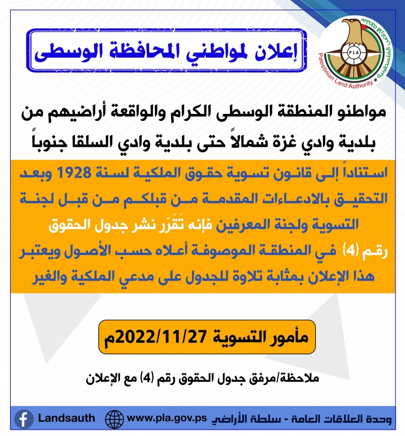 جدول الحقوق رقم 4 مشروع التسوية منطقة المصدرجدول الحقوق رقم 4 مشروع التسوية منطقة المصدر