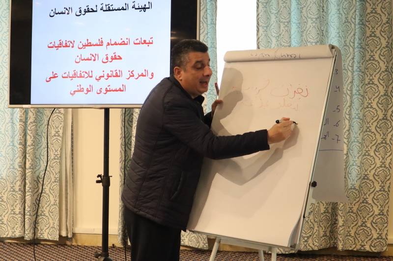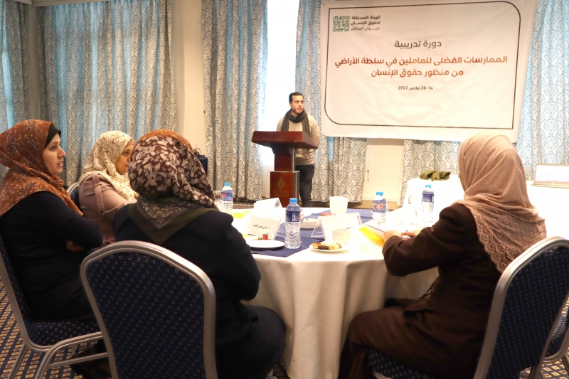 وتحدث المحامي حازم هنية منسق دائرة الرقابة على السياسات والتشريعات بالهيئة المستقلة عن سياسات وممارسات وإجراءات سلطة الأراضي ومدى انسجامها مع الالتزامات القانونية الناجمة عن الانضمام لمعاهدات حقوق الإنسان الدولية.