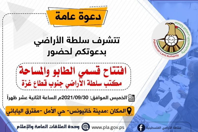دعوة حضور افتتاح قسمي الطابو والمساحة فرع الجنوب