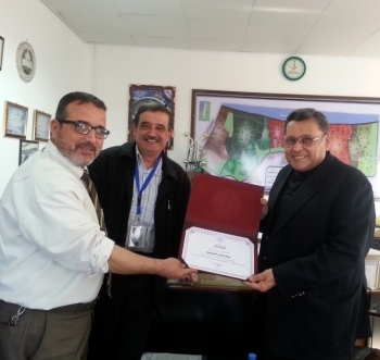 بحث رئيس سلطة الأراضي م. ابراهيم رضوان خلال لقائه في مكتبه بغزة ممثلة مكتب التنمية الايطالية ووفد من وزارة الاشغال العامة والاسكان مشروع تطوير حي الندى شمال القطاع