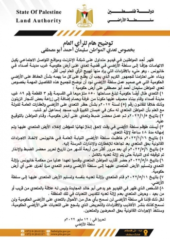 تحذير صادر عن سلطة الأراضي